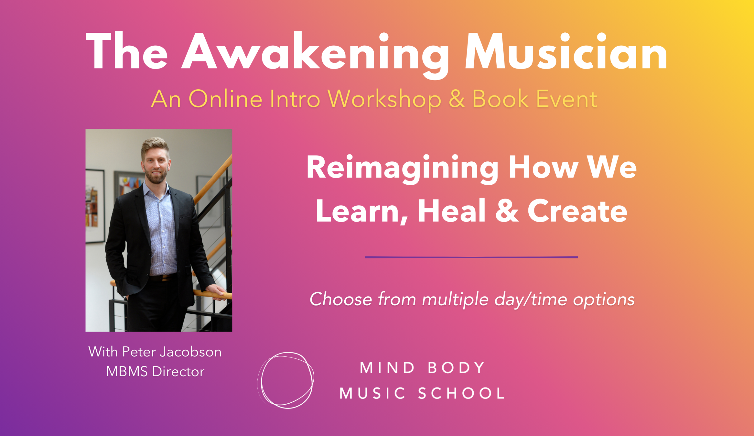 All registrants will also receive a digital draft copy of the introduction to Peter's forthcoming book, The Awakening Musician, the basis for this online workshop.
